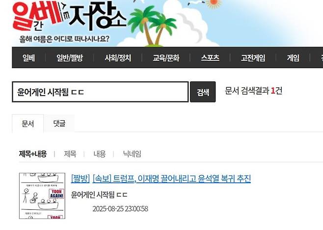 | ▲ 일간베스트저장소에 올라온 '윤어게인' 관련 글 |