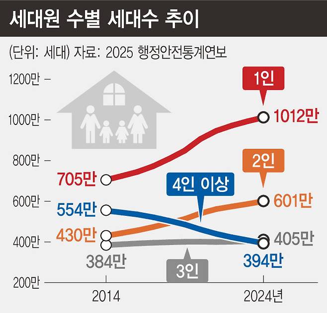 인구 줄었는데 가구 수는 늘었다…열에 넷은 1인 가구