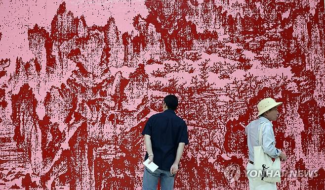 (목포=연합뉴스) 형민우 기자 = 27일 전남 목포시 목포문화예술회관에서 2025 전남국제수묵비엔날레 프레스 오픈이 열려 레고로 만든 황인기의 '오래된 바람'이 선보이고 있다. 2025 전남국제수묵비엔날레는 30일부터 10월 31일까지 목포와 진도, 해남 등에서 '문명의 이웃들'을 주제로 다양한 수묵 작품을 선보인다. 2025.8.27