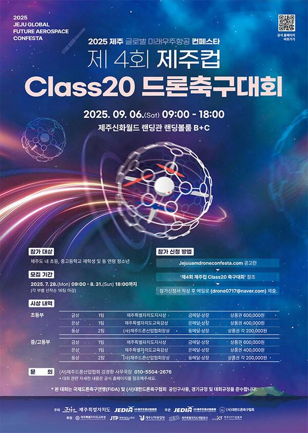 협회 관계자는 "드론축구는 디지털 전환 시대를 대표하는 융합스포츠로, 청소년에게 과학기술 체험과 새로운 여가문화를 동시에 제공한다"며 "이번 대회를 통해 제주가 드론스포츠와 드론관광의 중심지로 도약할 수 있도록 최선을 다하겠다"고 전했다.