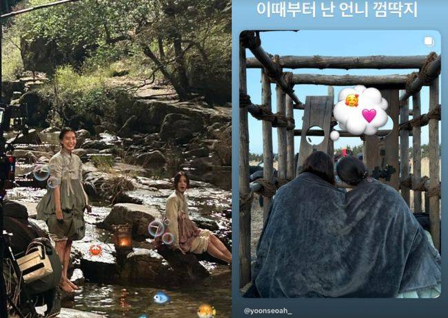 허름한 한복을 입은 두 사람은 차가운 계곡에 발을 담그는가 하면, 죄인을 호송하는 마차 소품에 나란히 앉아 담요를 함께 두르고 있다. 이와 관련 윤서아는 "이때부터 난 언니 껌딱지"라고 추가 글을 남겨 임윤아와의 돈독함을 뽐냈다.