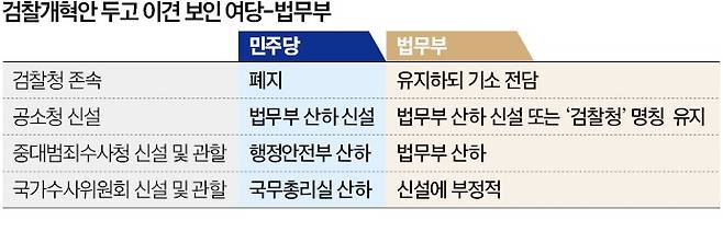 27일 당정협의를 하려고 했지만 무산되면서 민주당의 '검찰청 완전 폐지' 방침과 법무부의 '검찰청 수사·기소 기능 분리' 구상 간 입장 차이만 더욱 명확해졌다.