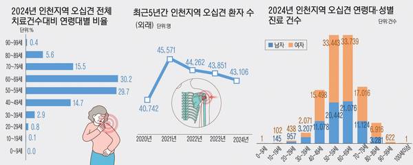 건강보험심사평가원 인천본부의 빅데이터 분석 결과를 보면 인천지역 의료기관(상급종합병원, 종합병원, 병·의원, 요양병원, 보건소 등 심사결정분 기준)에서 지난해 오십견으로 진료받은 외래 환자는 총 4만3천106명이다.