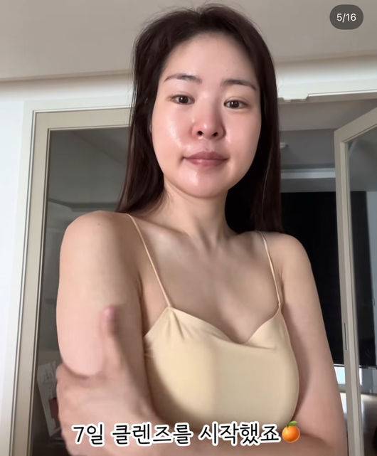 이에 미자는 "매일매일 스토리에 올렸다. 조금 둥글어진 몸, 안 되겠다 싶어서 7일 다이어트를 했다. 식단을 좀 했다"라며 공개했다.