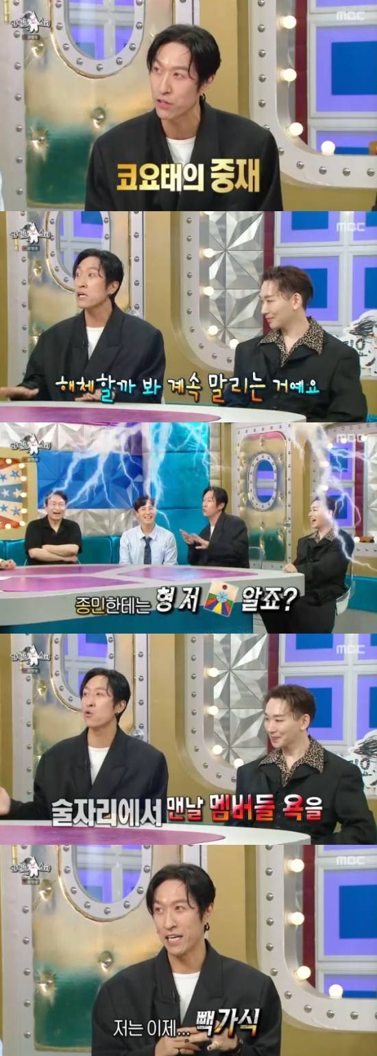 '라디오스타'에서 뺵가가 코요태 멤버 신지, 김종민에 대해 언급했다.