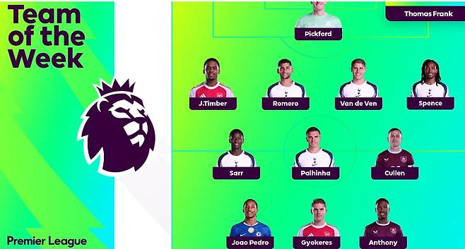 중원엔 조쉬 컬렌(번리), 주앙 팔리냐, 파페 사르(이상 토트넘)가 이름을 올렸고, 최전방 스리톱 라인에 제이든 앤서니(번리), 빅토르 요케레스(아스널), 주앙 페드루(첼시)가 배치됐다.