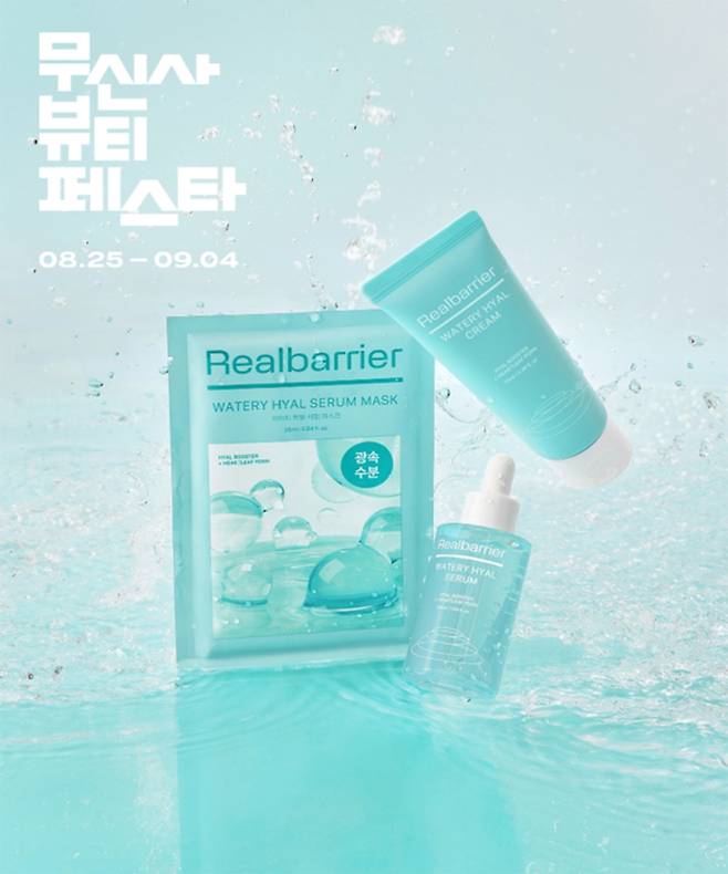 무신사의 대규모 온·오프라인 뷰티 페스티벌에 동시 참여하는 리얼베리어는 '수분 와락 ZONE' 컨셉의 팝업스토어를 열고 '워터리 히알 세럼'과 '워터리 히알 크림'을 주요 제품으로 선보인다. 이 제품들은 지난 5월 출시한 신제품으로, 피부 침투율이 높은 99% 고순도 히알루론산과 나노 파티클 히알루론산, 독자 개발 세라마이드를 함유해 피부에 강력한 수분감을 ‘와락’ 선사하는 것이 특징이다.