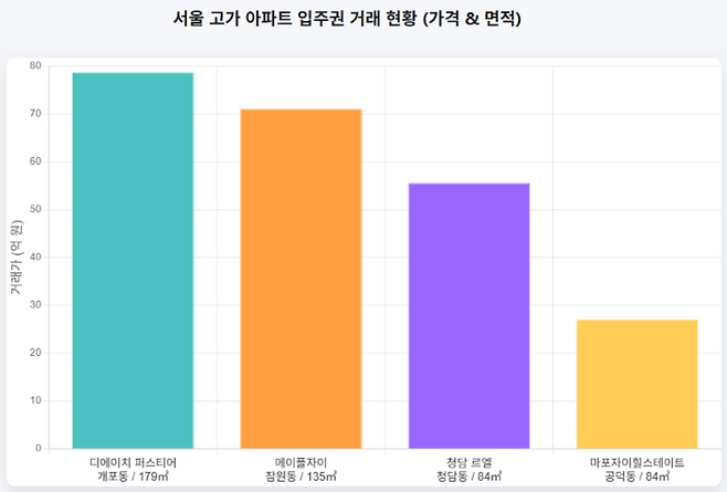 이달 6일에는 강남구 청담동 ‘청담 르엘’ 84㎡ 28층 입주권이 55억5000만원에 팔리기도 했다.