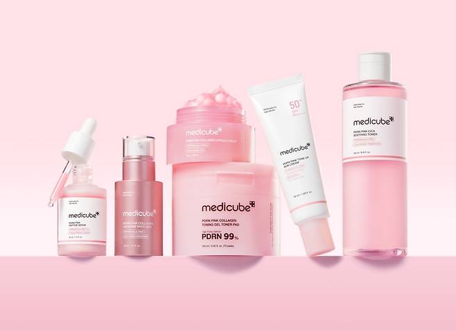PDRN은 연어 DNA에서 추출한 성분으로 피부 컨디션 개선에 도움을 준다. 메디큐브는 지난해 6월 해당 성분을 활용한 신규 라인을 선보였다. 주요 제품은 'PDRN 핑크 펩타이드 앰플'과 'PDRN 핑크 콜라겐 겔 마스크'로, 전체 판매량의 절반 이상을 차지했다. 특히 'PDRN 핑크 펩타이드 앰플'은 누적 400만 개 판매를 기록하며 홈 뷰티 디바이스와 함께 사용되는 등 새로운 스킨케어 루틴을 제시했다.