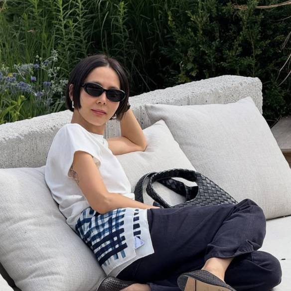 김나영은 블랙 탑과 심플한 블루 진이라는 가장 미니멀한 조합으로 등장했어요. 군더더기 없는 룩은 자칫 평범할 수 있지만, 생 로랑 이카리노 백을 더하는 순간 이야기가 달라집니다. 부드러운 램스킨에 정교한 퀼팅, 카산드라 로고가 주는 강렬한 임팩트까지. 작은 사이즈임에도 룩 전체를 단단히 잡아주죠. 블랙 진에 미니백 하나만 곁들여도 하루의 무드는 충분히 달라질 수 있다는 사실, 그녀가 다시 증명합니다.