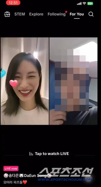 28일 해외 팬 계정으로 추정되는 SNS에는 "송다은이 어제(27일) SNS에서 3시간 동안 라이브 방송을 했다"는 글과 함께 영상이 게재됐다. 공개된 영상에서 송다은은 하트 이모티콘을 붙이며 한 남성과 즐겁게 대화를 나누고 있는 모습이다. 특히 영상 속 송다은의 헤어스타일은 그가 자신의 계정을 통해 공개했던 셀카 사진 속 헤어스타일과 비슷해 해당 영상이 최근에 촬영된 것임을 짐작하게 했다.