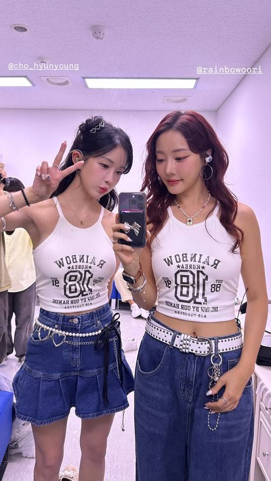 27일 고우리는 자신의 계정에 조현영과 거울 셀카를 게시했다. 레인보우18의 대기실로 보이는 배경에서 브이를 하고 있는 둘의 모습은 비슷한 콘셉트의 의상에 다른 매력을 보여 주고 있다.