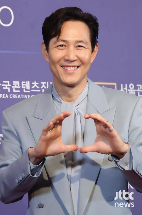 이날 아이유는 단정한 블랙 앤 화이트 의상으로 청순한 매력을 뽐냈고, 이정재는 특유의 여유로운 미소와 함께 '하트 포즈'를 선보였다.