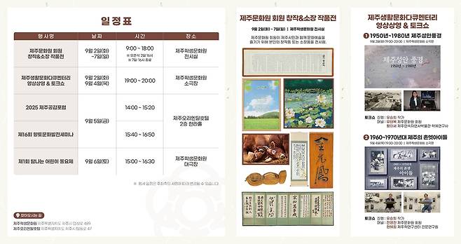 9월 5일(금) 제주오리엔탈호텔에서 '2025 제주공감포럼'도 개최한다. 제주지역의 고유문화의 보존, 전승 방안에 대한 주제로 진행한다. 이어서 '제16회 향토문화발전세미나'를 제주문화원 향토문화연구회의 역할이라는 주제로 진행한다.