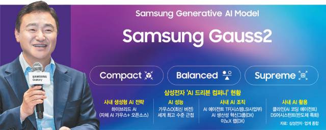 가우스 성능 현황과 추가 AI 모델 출시 계획도 공유했다. 노 대행은 “(최근 사내 공개된) ‘가우스O(최신 버전)’는 자체 평가 결과 세계 최고 수준에 근접했다”면서 “이달 안에 고속·고효율 추론 모델도 추가 공개할 예정”이라고 언급했다. 삼성전자는 지난해 개발자 콘퍼런스에서 사내 생성형 AI 모델인 가우스2를 공개했다. 이후에도 가우스 성능을 높이는 동시에 외부 오픈소스 AI 등 검증된 솔루션도 적극 활용하며 사내 생성형 AI 고도화에 힘쓰고 있다.