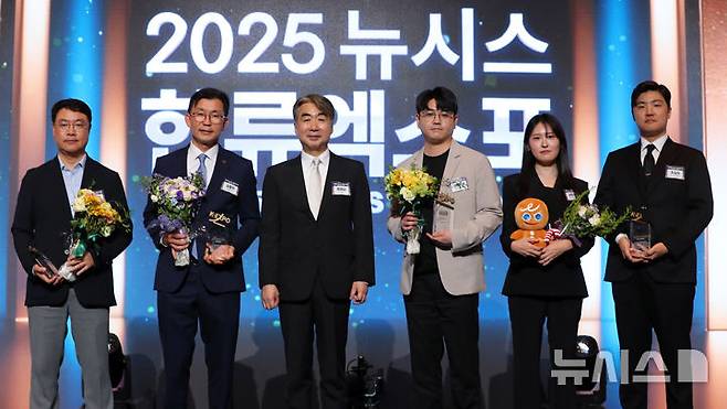 [서울=뉴시스] 김혜진 기자 = 염영남 뉴시스 대표이사가 28일 오후 서울 중구 롯데호텔에서 열린 제7회 뉴시스 한류엑스포(2025 K-엑스포)에서 수상자들과 기념촬영 하고 있다.