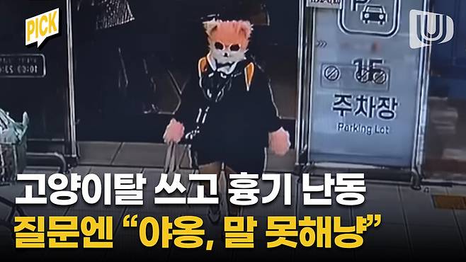 고양이탈 쓰고 흉기 난동, 질문엔 "야옹, 말 못해냥" 고희지 기자 2025. 8. 28. 17:57 음성으로 듣기 음성재생 설정 이동 통신망에서 음성 재생 시 데이터 요금이 발생할 수 있습니다. 글자 수 10,000자 초과 시 일부만 음성으로 제공합니다. 남성 여성 느림 보통 빠름 음성 재생하기 닫기 음성 재생 중지 번역 설정 번역beta Translated by kaka i 한국어 - English 영어 日本語 일본어 简体中文 중국어 Nederlands 네델란드어 Deutsch 독일어 Русский 러시아어 Malaysia 말레이시아어 বাঙ্গোল ভাষা 벵골어 tiếng Việt 베트남어 Español 스페인어 اللغة العربية 아랍어 Italiano 이탈리아어 bahasa Indonesia 인도네시아어 ภาษาไทย 태국어 Türkçe 튀르키에어 Português 포르투갈어 Français 프랑스어 हिन्दी 힌디어 닫기 번역중 Now in translation 글씨크기 조절하기 글자크기 설정 파란원을 좌우로 움직이시면 글자크기가 변경 됩니다. 가 매우 작은 폰트 작은 폰트 보통 폰트 큰 폰트 매우 큰 폰트 가 이 글자크기로 변경됩니다. (예시) 가장 빠른 뉴스가 있고 다양한 정보, 쌍방향 소통이 숨쉬는 다음뉴스를 만나보세요. 다음뉴스는 국내외 주요이슈와 실시간 속보, 문화생활 및 다양한 분야의 뉴스를 입체적으로 전달하고 있습니다. 닫기 인쇄하기