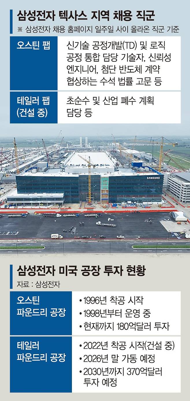 업계 관계자는 "삼성전자가 미국 공장에서 채용을 늘리고 있는 건 생산과 기술 역량 자체를 현지에서 끌어올리려는 시도"라며 "국내에서도 성장 가능성을 보고 미국 팹으로 가고 싶어하는 수요가 큰 것으로 안다"고 전했다.