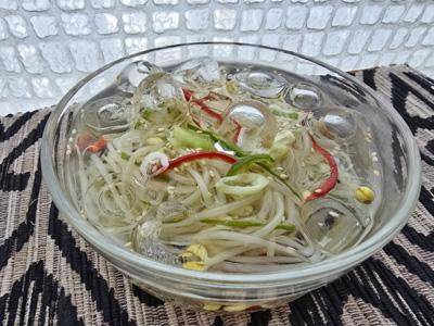 5. 그릇에 ‘④’의 시원한 콩나물냉국 을 담고, 얼음을 넣어 완성한다.