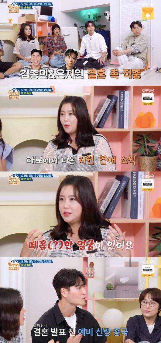 솔비는 “저도 너무 신기한 게 지원 오빠 결혼 소식 전에 타로를 봐준 적 있다. 분명히 결혼할 거라고 나온 거다. 여자친구도 있고, 그게 실제로 맞았다”라고 밝혔다. 이에 김숙은 “얼굴만 봐도 촉이 오냐”라고 궁금해했고, 솔비는 “종민 오빠를 만났는데 오빠 느낌이 이상하더라. 뭔가 떼꼼한(?) 얼굴이 있다. 뭔가 얼굴에 화색이 있더라. 그런 게 느껴졌다”라고 설명했다.