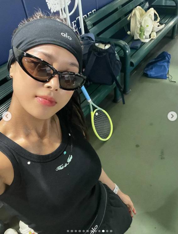 공개된 사진 속 유빈은 테니스 코트에서 땀에 젖은 채 운동을 즐기거나, 심판 조끼를 입고 깃발을 들고 있는 모습으로 눈길을 끌었다.