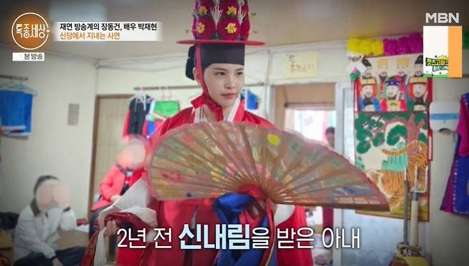 아내는 "이 때문에 점집을 갔는데, (갑자기 저한테) 진을 받아야 한다고 하더라. 갑자기 일어날 수도 없게 계속 토했다"라고 밝혔다. 박재현은 "그냥 멍했다. 딸이 학교 가서 '너희 아빠 재연배우'란 소리를 듣게 해주고 싶지 않아서 방송을 그만둔 것도 있었다. 그랬는데, 엄마가 무속인이면 딸이 놀림받지 않을까 걱정했다"라고 털어놓았다.