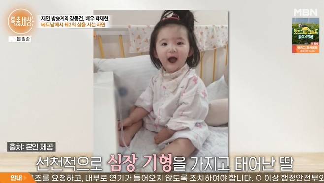 박재현은 딸과 영상 통화를 한 후 눈물을 흘렸다. 박재현은 "적응한다고 했는데, 딸만 보면 좀 그렇다. 못난 아빠 만나서 고생하는 것 같아서. 건강한 몸을 주지도 못하고, 같이 있어야 할 나이인데 같이 있지도 못하고. 선천성으로 심장이 안 좋아서 수술을 네 번 정도 크게 했다"라고 털어놓았다. 심장 위치가 반대로 태어난 딸은 8살인 지금까지 네 번의 수술을 견뎌왔다고.