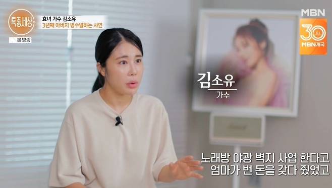 [TV리포트=남금주 기자] 트로트 가수 김소유가 3년째 아버지를 간호하고 있다고 밝혔다.