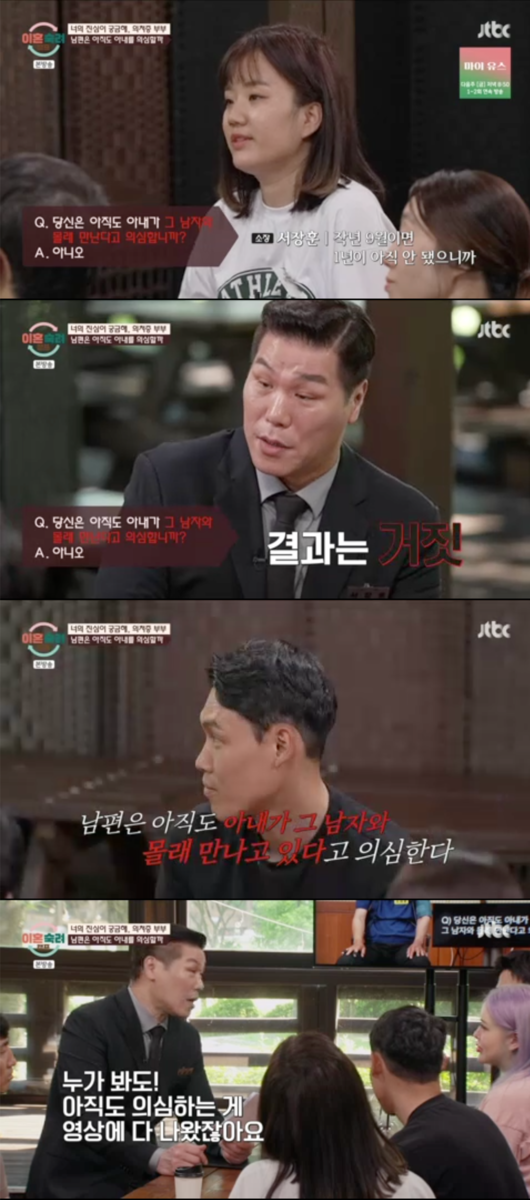 아내가 남편에게 "아직도 내가 그 남자를 몰래 만난다고 의심하느냐"고 물었고, 남편은 "아니오"라고 답했다. 그러나 검사 결과는 ‘거짓’으로 판명됐다. 이에 서장훈은 "누가 봐도 아직도 의심하는 게 다 영상에 나왔다"고 말하며 답답함을 토로했다.