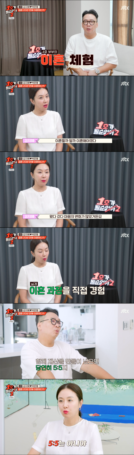 28일 전파를 탄 JTBC ‘1호가 될 순 없어2’에서는 김지혜, 박준형 부부가 결혼 20주년을 맞아 ‘이혼 체험’을 하는 모습이 그려졌다.