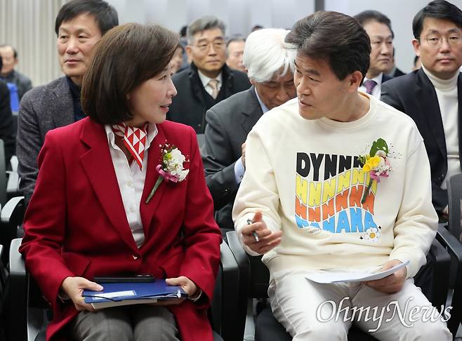 | ▲ 나경원 국민의힘 의원과 전한길 한국사 강사가 지난 2월 26일 오후 서울 중구 서울YWCA에서 열린 신평 변호사의 저서 '시골살이 두런두런' 출판기념회에 강연자로 참석, 이야기를 나누고 있다. |