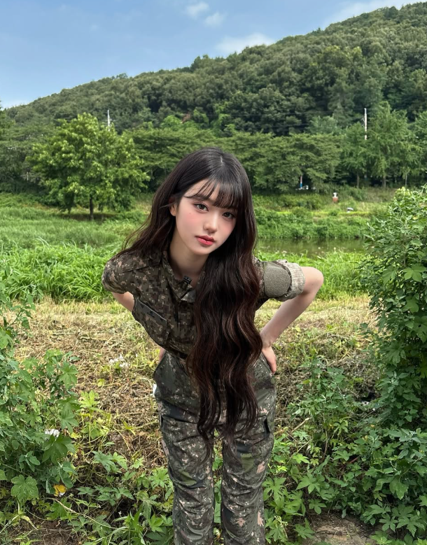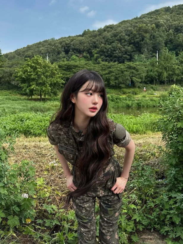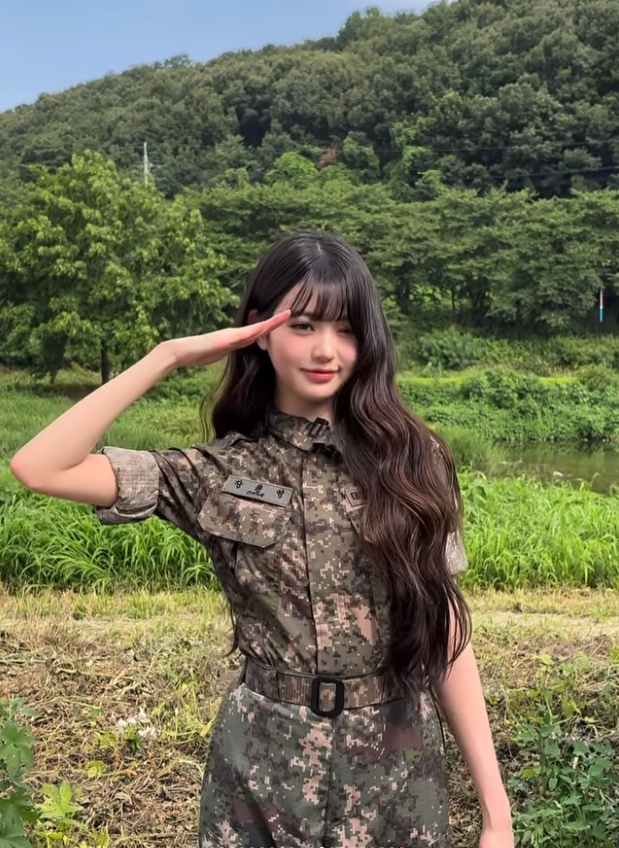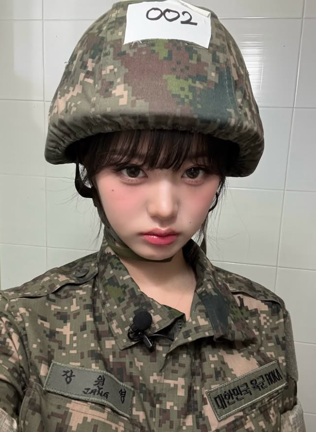 그룹 아이브 장원영이 군복을 입고 미모를 뽐냈다.