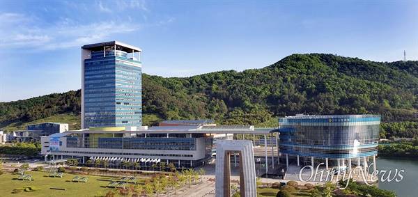 | ▲ 전라남도청사와 전라남도의회. 도의회 오른쪽이 남악저수지다. |