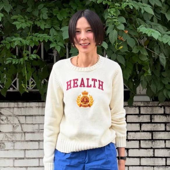 깔끔한 프린트 니트는 가을 초입에 입기 좋은 담백한 선택이죠. 김나영 은 여기에 짧은 블루 쇼츠를 매치해 계절감의 간극을 자연스럽게 메워주었습니다. 스포티한 발목 양말과 아웃도어 스니커즈로 캠퍼스풍 캐주얼을 얹은 센스도 눈에 띕니다. 미니 백이 전체적인 룩에 단정한 마무리를 더해주며, 한낮에는 가볍게, 저녁에는 니트 특유의 포근함이 살아나는 바로 지금의 가을 룩입니다.