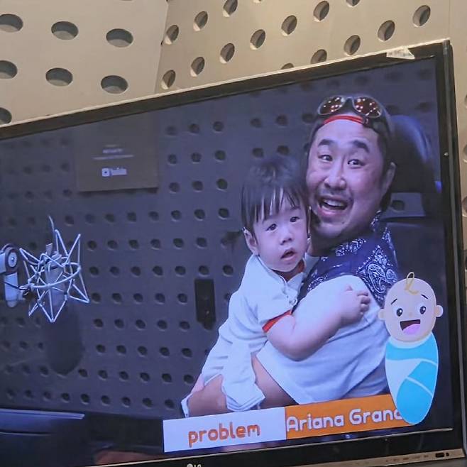 사진 속에는 라디오 부스에서 아들 현조 군을 품에 안고 사진을 촬영 중인 강재준의 모습이 담겨있다.