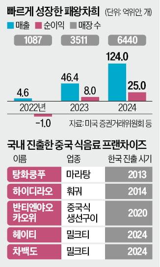 중국 외식 브랜드의 한국 진출 러시도 거세다. 2010년대 후반부터 대학가와 SNS를 중심으로 마라탕, 탕후루가 인기를 끌었다. 훠궈 프랜차이즈 하이디라오는 지난해 국내 매출 780억원을 기록한 데 이어 올해 1000억원대를 돌파할 것으로 전망된다. 마라탕 체인점 탕화쿵푸 매출도 2023년 182억원에서 지난해 222억원으로 증가하고 매장은 2022년 327개에서 지난해 479개로 확대됐다. 중국식 생선요리 전문점 반티엔야오카오위 역시 강남, 홍대 등 주요 상권을 파고들며 점포를 빠르게 늘리고 있다.