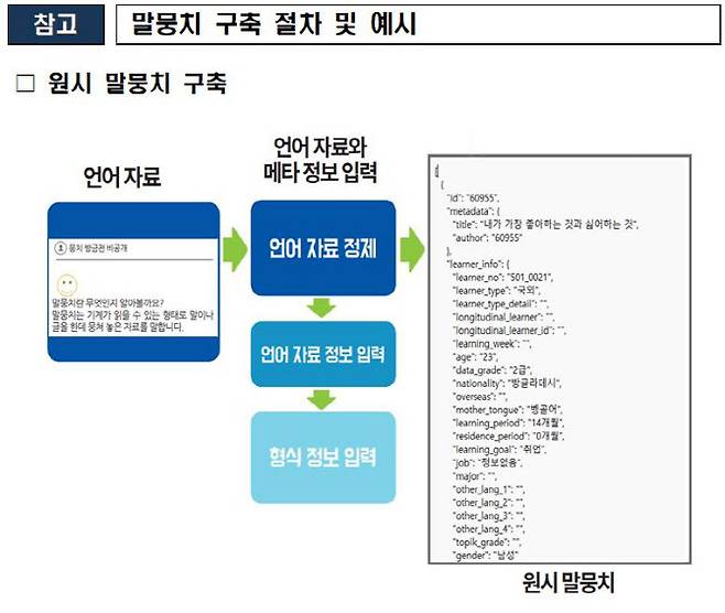 국어원 관계자는 “인공지능 시대에 한국어 학습자 말뭉치의 중요성은 더욱 강조되고 있다”며 “한국어 학습자 말뭉치의 데이터들이 다양하게 활용될 수 있도록 앞으로도 말뭉치 사업 규모를 확대해 나가겠다”고 말했다.