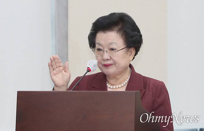 | ▲ 이배용 국가교육위원회 위원장이 지난해 10월 8일 서울 여의도 국회에서 열린 교육부 등에 대한 국정감사에서 선서하고 있다. |