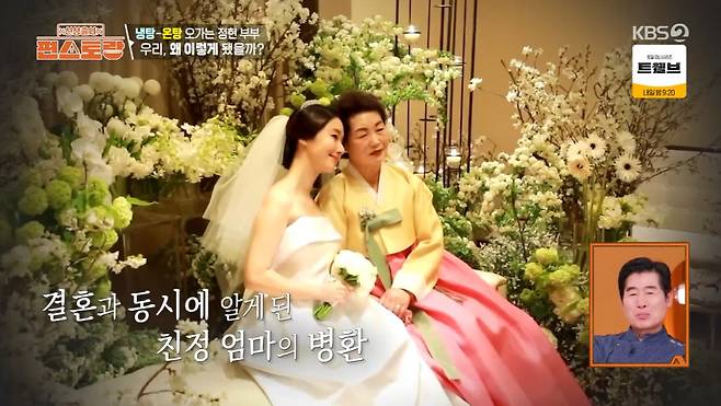 이정현도 당시를 떠올리며 "그래서 신혼이 정말 슬펐던 것 같다. 신혼여행 가서도 계속 울었다"라고 말했다. 이정현의 어머니는 2년 동안 투병하신 끝에 하늘로 떠나셨다고.