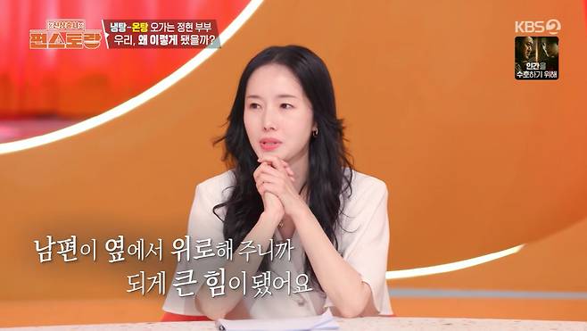 29일 방송된 KBS 2TV '신상출시 편스토랑'(이하 '편스토랑')에서는 하루에도 몇 번씩 냉탕과 온탕을 넘나들며 웃음을 주는 결혼 7년 차 이정현 부부의 이야기가 공개됐다.
