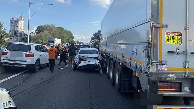 사고 직후 일대가 정체를 빚던 중 뒤따르던 SUV와 화물차 등 차량 4대도 추가로 추돌하는 사고가 났습니다.
