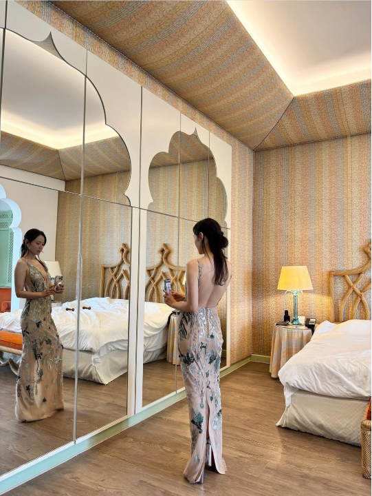 손예진은 29일 자신의 SNS에 거울 앞에서 드레스를 착용한 근황 사진을 공개했다. 화려한 플라워 자수가 새겨진 누드톤 드레스는 등을 깊게 파낸 백리스 디자인으로, 운동으로 다져온 단단한 등근육이 고스란히 드러났다.