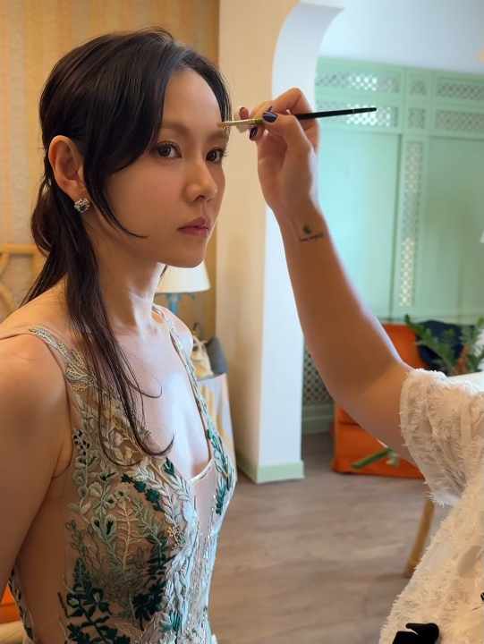 배우 손예진(43)이 레드카펫을 앞두고 과감한 백리스 드레스로 시선을 강탈했다.