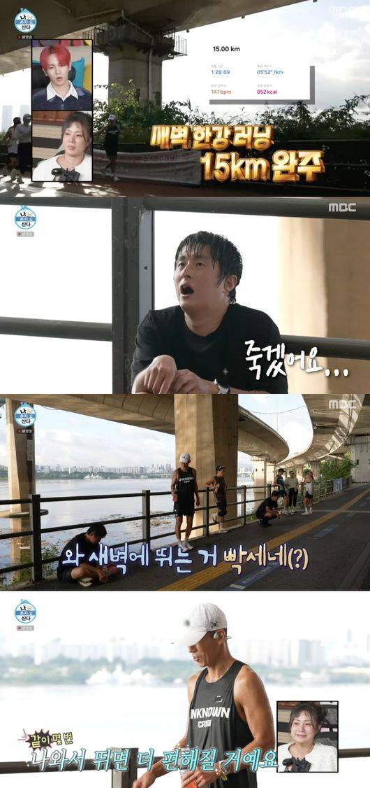 이날 새벽 4시에 기상해 션과 함께 15km 한강 러닌을 한 기안84는 “새벽에 뛰는 거 빡세네”라며 주저앉았다. 그런 기안84 옆으로 다가온 션은 “새벽에 일주일에 2-3번 나와서 하면 더 편해질 거다”라고 제안해 눈길을 끌었다.