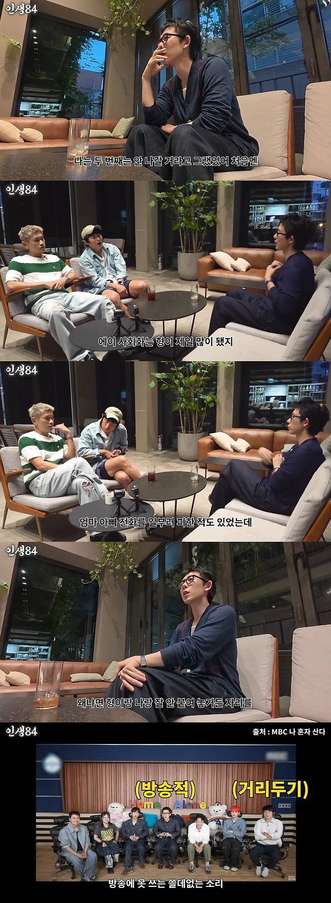 이에 코드쿤스트는 "(나 혼자 산다'에서) 형이랑 나랑 자리를 잘 안 붙여놓는다"고 말했고, 기안84는 "자꾸 방송에 못 쓰는 쓸데없는 얘기를 하니까 안 붙여 놓는다"고 고백해 웃음을 자아냈다.