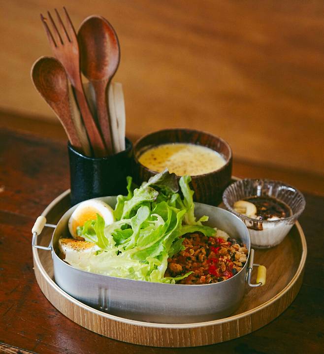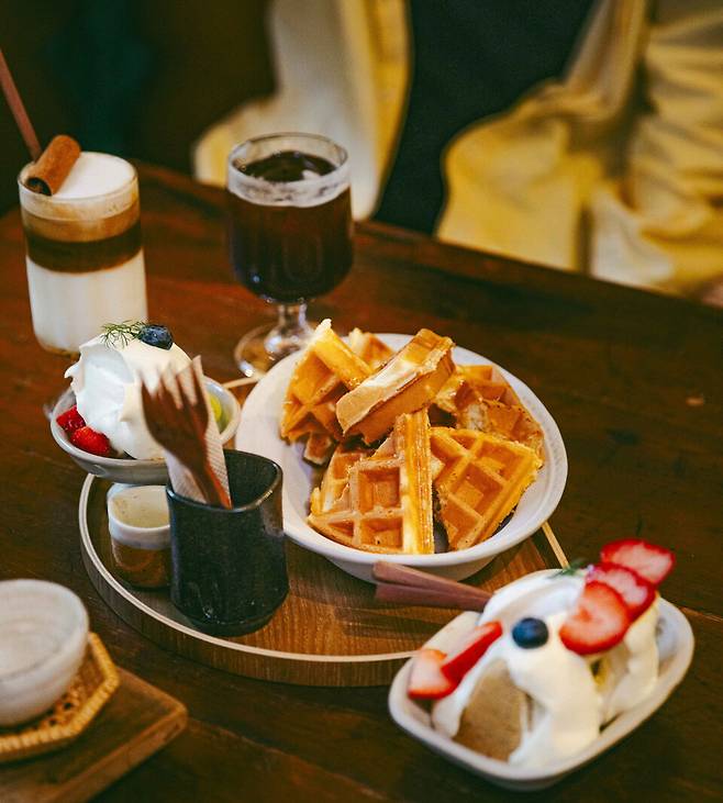 메뉴도 식사, 디저트, 음료 골고루 있다. 커리와 대만식 매운 고기볶음 도시락, 오니리기 등의 식사와 베이커리(와플·케이크·구움과자 등), 다양한 음료(커피·밀크티·차 등)가 준비돼 있다. 앙증맞은 담음새라 사진으로 남기기 좋다.