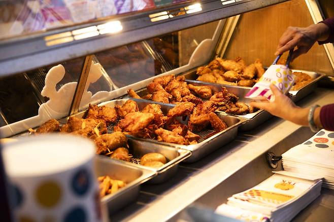 치킨 종류와 부위가 다양한데, 맛은 오리지널과 크리스피 마일드, 크리스피 스파이시 세 종류다. 한국인이라면 크리스피 마일드이나 스파이시가 적당하다. 기본적으로 치킨은 염도가 조금 있어 짭짤한 편이다. 그냥 먹는 것보다 맥주 안주로 적합하다.