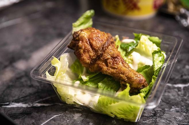 식사도 괜찮고, 닭다리 1~2개와 편의점 샐러드를 활용하면 가성비 좋은 야식이 완성된다. 비스킷, 컬리 프라이(감자튀김), 코울슬로, 고구마튀김 등을 곁들여도 좋다.