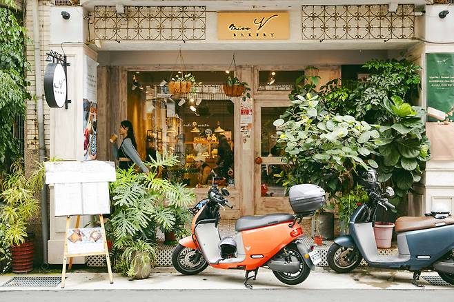 테라스 좌석의 화분이 싱그러운 배경이 돼 준다. 도시락이나 디저트를 활용해 촬영하면 타이베이 감성 여행 사진으로 제격이다.