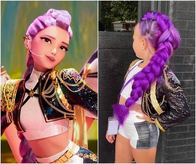 '케데헌' 팬들은 직접 주인공이 되어보기도 합니다. 해외에서는 '케데헌' 콘셉트 생일 파티가 유행입니다. 부모님들은 아이를 위해 루미 의상을 직접 제작하고, 머리를 땋아줍니다.